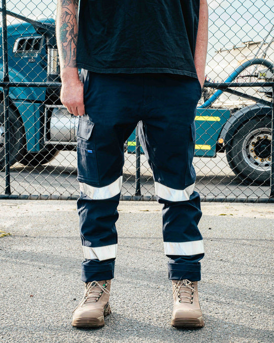- UP-2T Elastic Waist Reflective Taped Cargo Pant - Navy